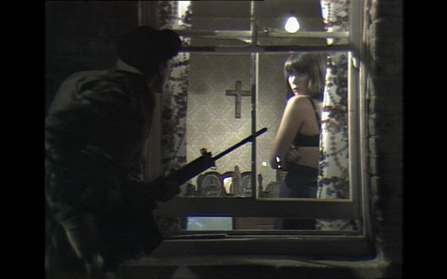 McNally, in voice over, provides Johnny's interior monologue about his desire to escape from this reality into his own fantasy. His inability to grasp that reality ('I don't know what I'm doing here' he shouts through a window to a partially disrobed young woman) perhaps echoed the sentiments of the British public and army alike at a time when the power sharing in Ireland had collapsed in 1974 under pressure from strikes, violence and Unionist opposition. Johnny's accidental smashing of the woman's living room window is the catalyst to the wounding of a fellow soldier, Corporal Brown, by hidden snipers.